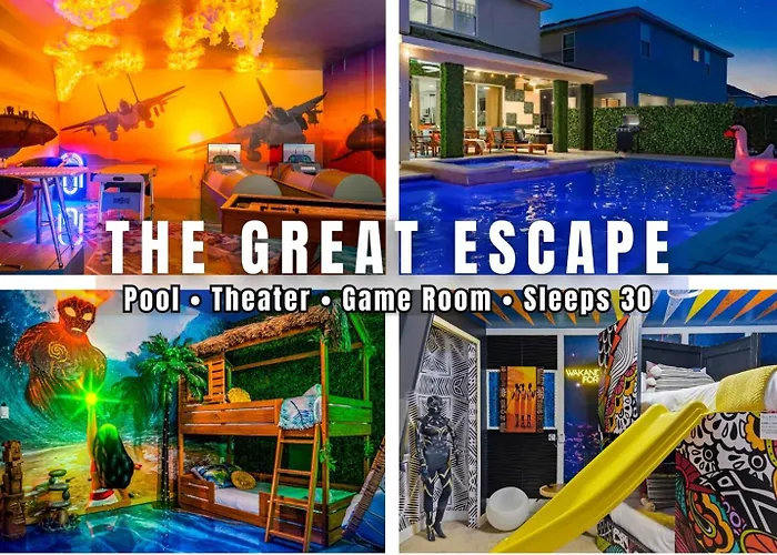 Situada a apenas 1.1 km do Orlando Tree Trek Adventure Park Zip Line, a pousada Epic Themes Poolhot Tub Theater & Game Room Orlando dispõe de terraço com vistas para a rua. A acomodação está situada no bairro Celebration e convida os hóspedes a desfrutar de pátio e área de recreação.